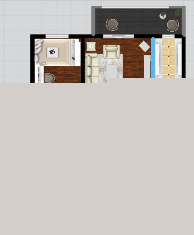陽(yáng)臺(tái)設(shè)計(jì)與客廳相互照應(yīng),綠色盆栽增添生機(jī)。