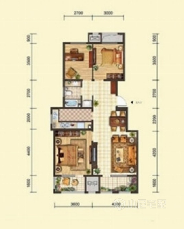 以暖黃色為主色調(diào)的客廳,還掛了兩幅畫哦,濃濃溫馨甜蜜。
