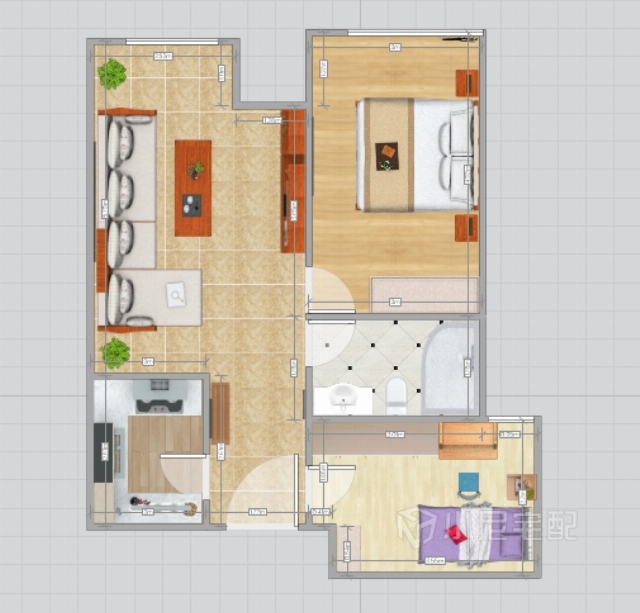 沙發(fā)、茶幾、電視柜一體色,加與壁紙強(qiáng)烈的對(duì)比色,具有更出眾的視覺(jué)效果。