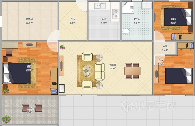這是一個(gè)四室兩廳的戶型,業(yè)主是一對(duì)從法國回來的海歸夫婦,裝修采用簡約歐式風(fēng)格,帶著一點(diǎn)奢華的味道,大氣而浪漫。家裝家具一體價(jià):24萬。