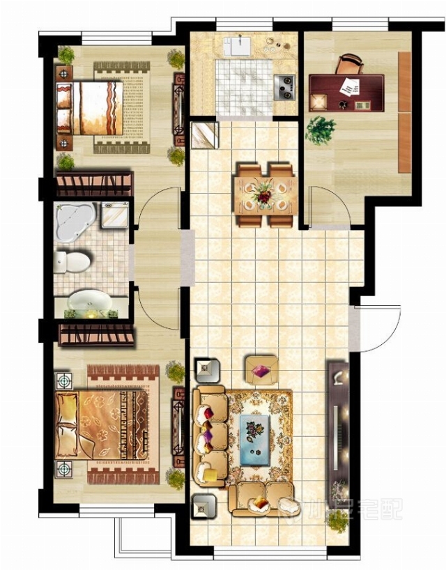 書房兼客房,榻榻米的神奇用途,利用隔板作為書架,既節(jié)省空間又極具收納功能。