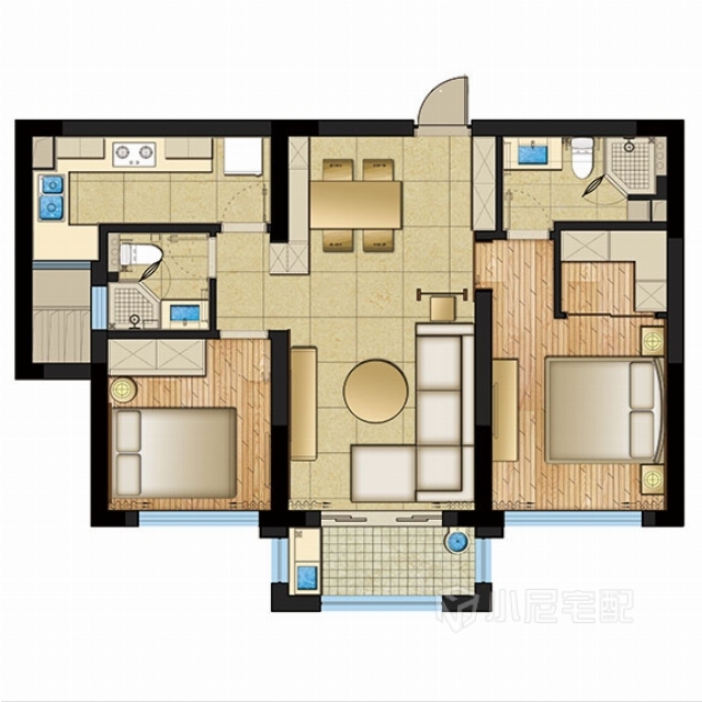 客廳-沙發(fā)、茶幾、電視柜一體色,加與壁紙,木飾面強(qiáng)烈的對(duì)比色,具有更出眾的視覺(jué)效果。