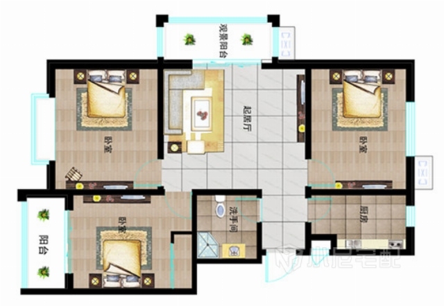 雖然空間的整體色調(diào)為白色,但由于明度、飽和度的不同,也能夠體現(xiàn)出一定的層次感。