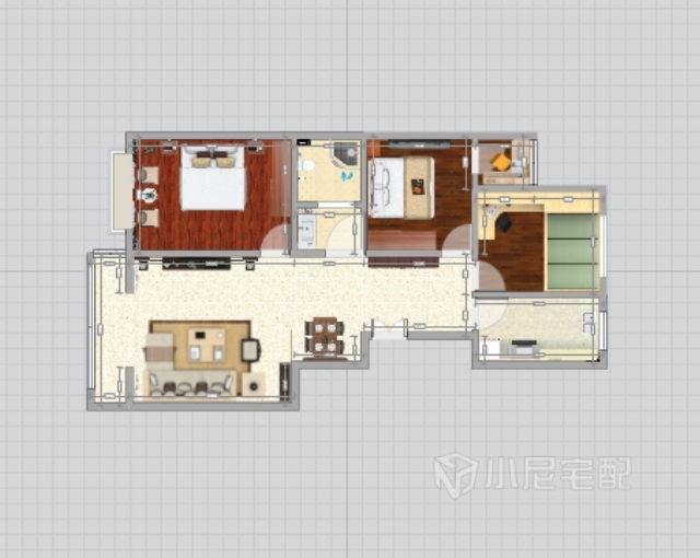 兒童房:作為四口之家,孩子必須有的單獨(dú)學(xué)習(xí)生活的環(huán)境,做榻榻米也可以滿足平日客人到訪后不能留宿的尷尬,增加極大的儲物空間,生活空間,學(xué)習(xí)空間。