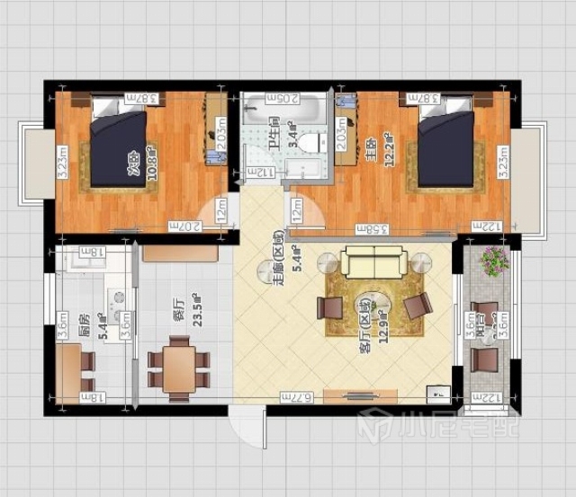 房間整體以原木色和白色為主色調(diào),呈現(xiàn)現(xiàn)代簡約風(fēng)格。