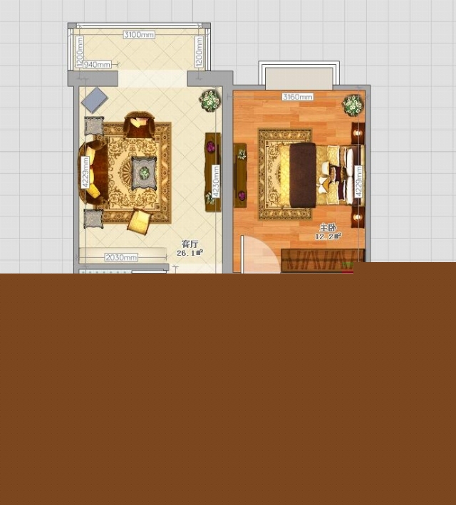 客廳:以木質家居為主,但不是復古式的桌椅,而是富有現(xiàn)代感的沙發(fā)和茶幾。除了保留中式的韻味外,還加了玻璃、燈帶等現(xiàn)代材料,使空間又包含了現(xiàn)代生活氣息;光源上使用簡潔幾何燈具,大量采用自然光;在家具搭配上主要取材于自然,以木材為主。