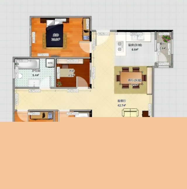 雖然面積不大,但是功能齊全、充分預(yù)留了兒童的活動空間。