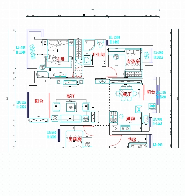清新海藍:明快純凈的天空顏色,讓臥室整體變得非常得寧靜淡定。但是全部用藍色未免單調(diào),因此床品、地毯、窗簾等布藝都選用了具有豐富圖案的款式。