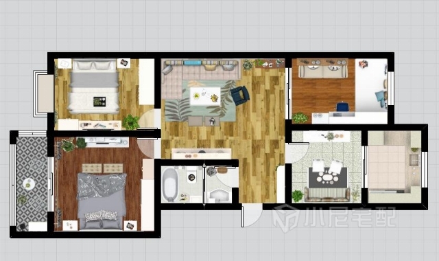 本設(shè)計(jì)追求的是空間的實(shí)用性和靈活性。居室空間是根據(jù)相互間的功能關(guān)系組合而成的,而且功能空間相互滲透,空間的利用率達(dá)到最高。