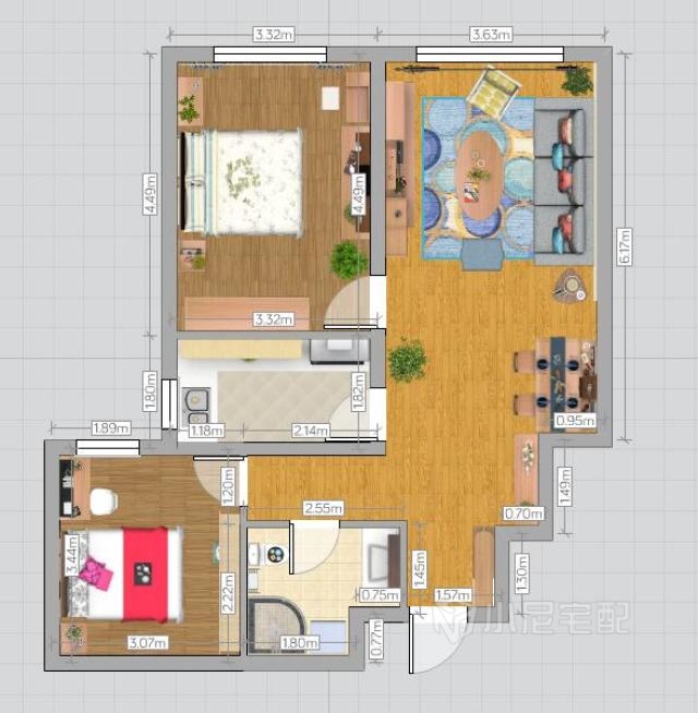 簡約的背景墻,色彩鮮艷的抱枕,和諧的色彩搭配,柔軟的質(zhì)感。