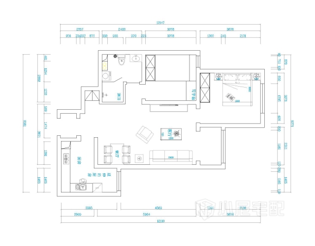 臥室整體灰色相呼應(yīng)亮黃色點(diǎn)綴
