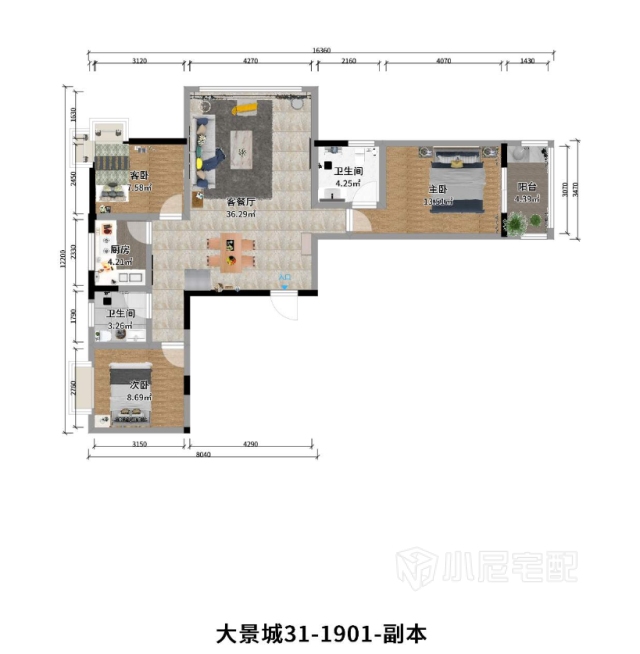 105㎡#三室兩廳兩衛(wèi)#混搭