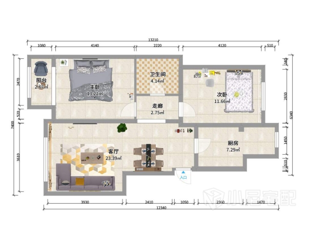 90㎡#兩室兩廳一衛(wèi)#簡約